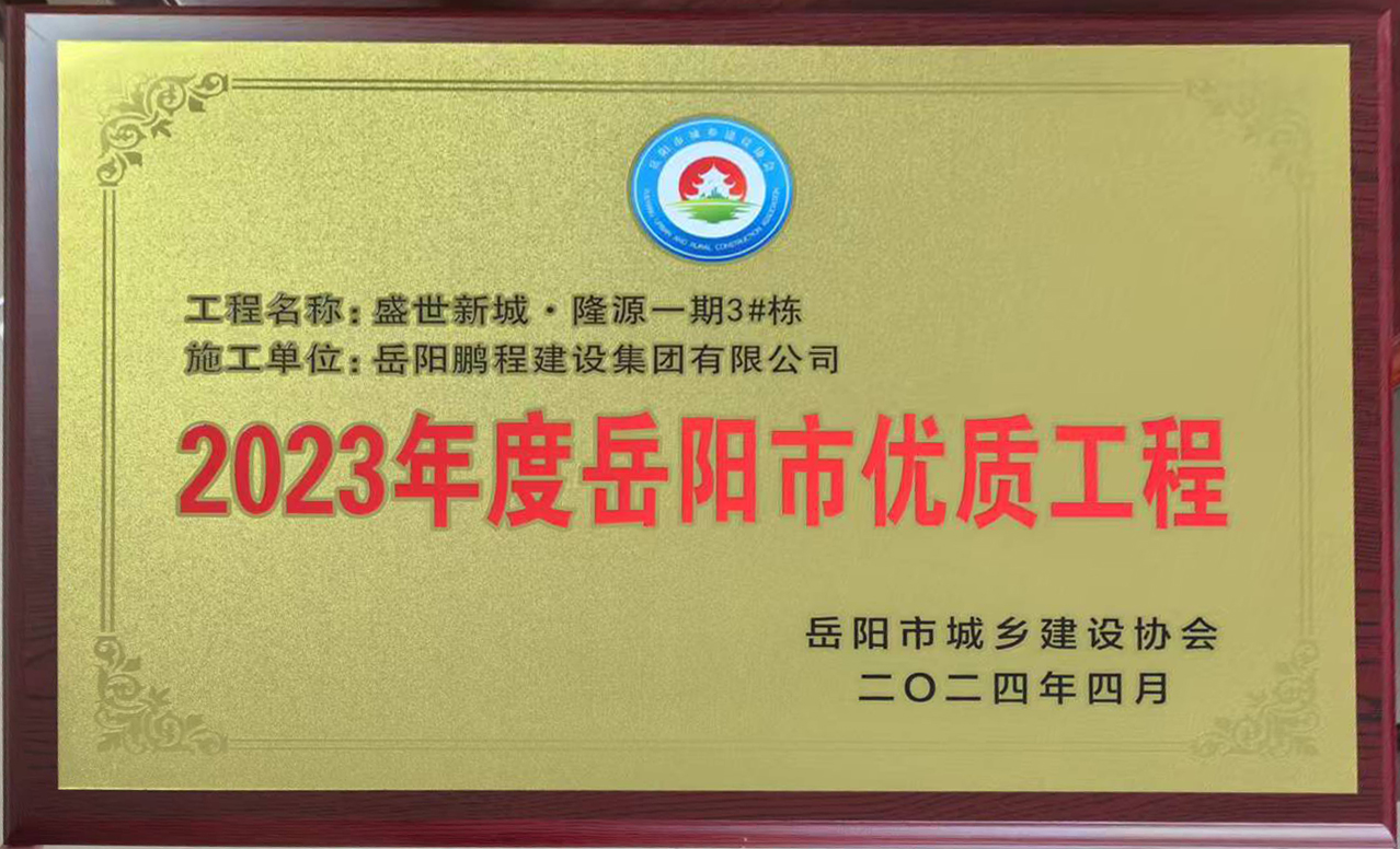 2023年度岳陽市優(yōu)質(zhì)工程--盛世新城隆源一期3#棟