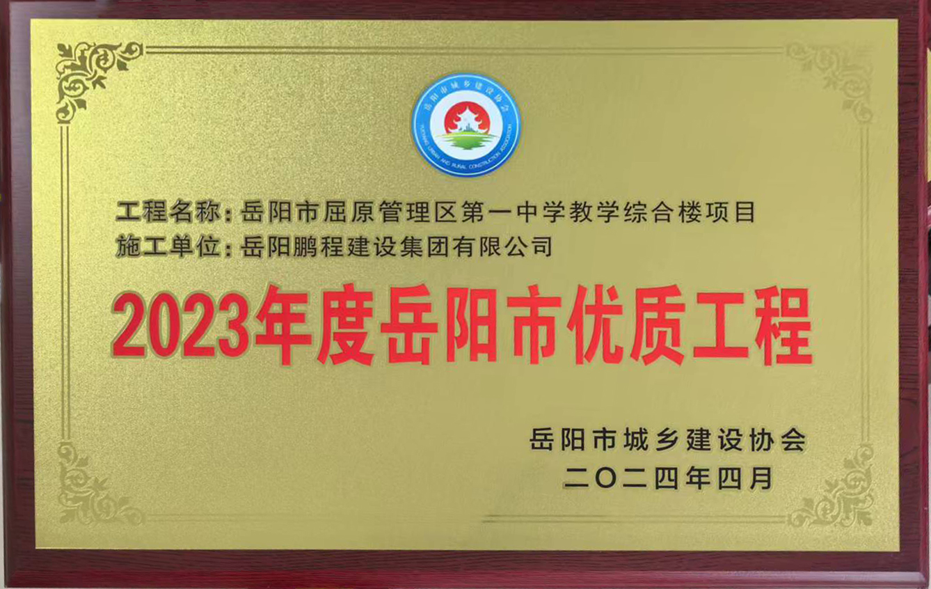 2023年度岳陽市優(yōu)質(zhì)工程--岳陽市屈原管理區(qū)第一中學(xué)教學(xué)樓綜合樓項(xiàng)目